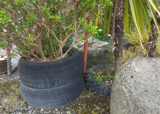 TYRES Tyres used as pots at South Auckland’s Drury Tyres. Picture / Mathieu Day